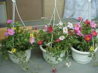 ポーチュラカです。 マツバボタンともいうそうです。3こで千円でした。夏中、たのしませてくれました。