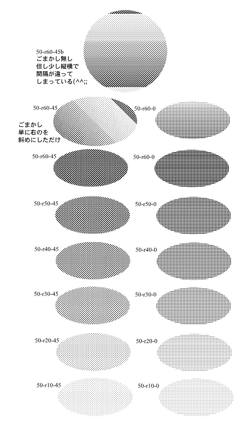 http://www5a.biglobe.ne.jp/~area-m/ を参考に。。。 まずでは50線で濃度10%なら 1インチに50個ですから、 グリッドを0.02 inにします。